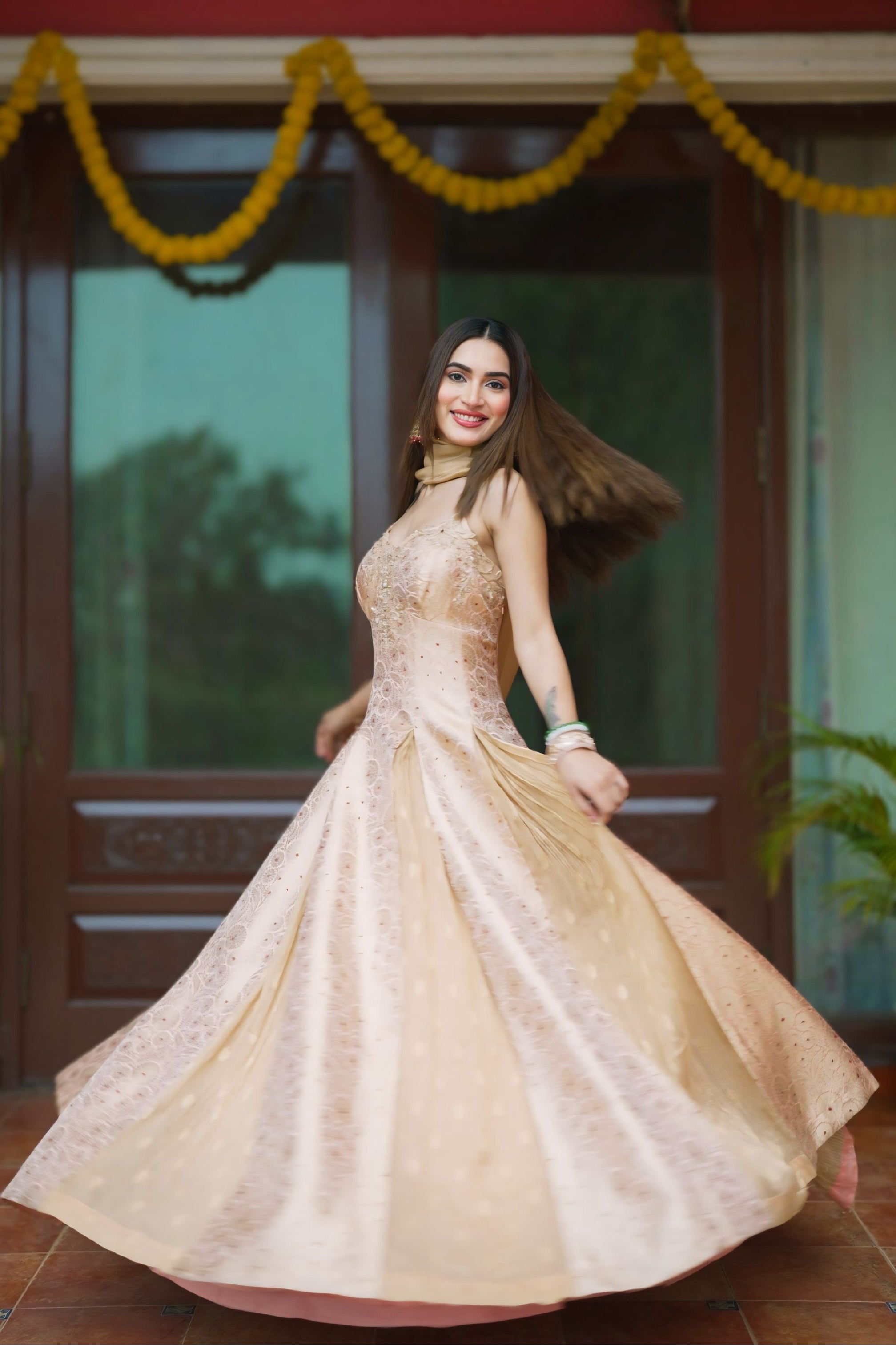 This banarasi Anarkali comes alive in motion, fluid, graceful, and quietly opulent.
